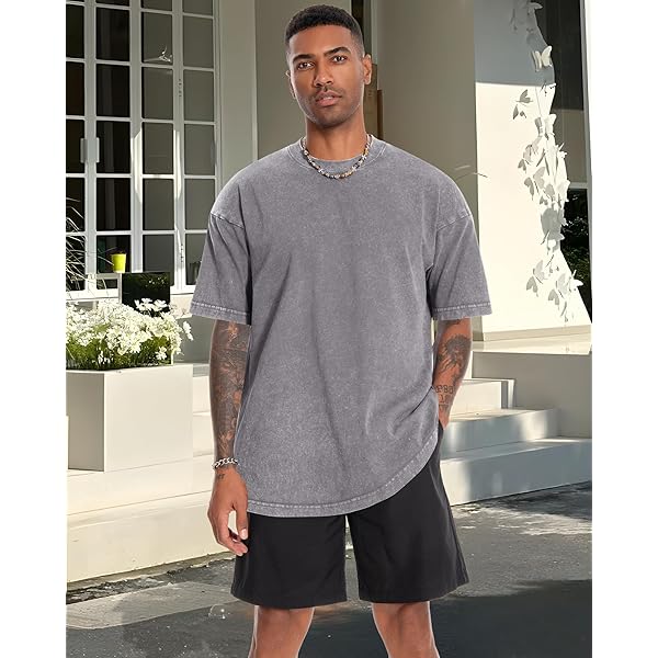 Grey Acid-Wash Oversized Crew Neck Short-Sleeve T-Shirt