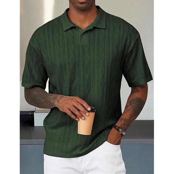 Olive Green Argyle Knit Short-Sleeve Polo Shirt