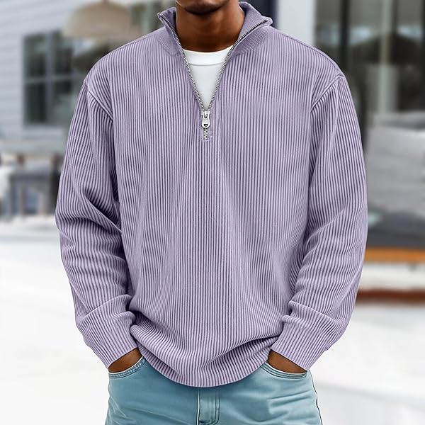 Lilac Striped Quarter-Zip Oversized Long-Sleeve Top