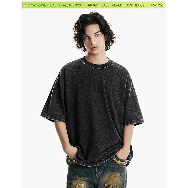 Black Acid-Wash Oversized Drop-Shoulder Short-Sleeve T-Shirt