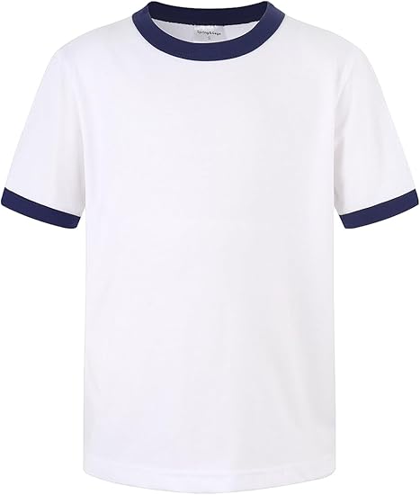White Short-Sleeve T-Shirt with Navy Contrast Ringer Trim