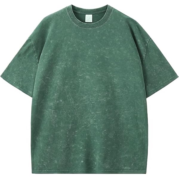 Olive Green Acid-Wash Oversized Crew Neck Short-Sleeve T-Shirt